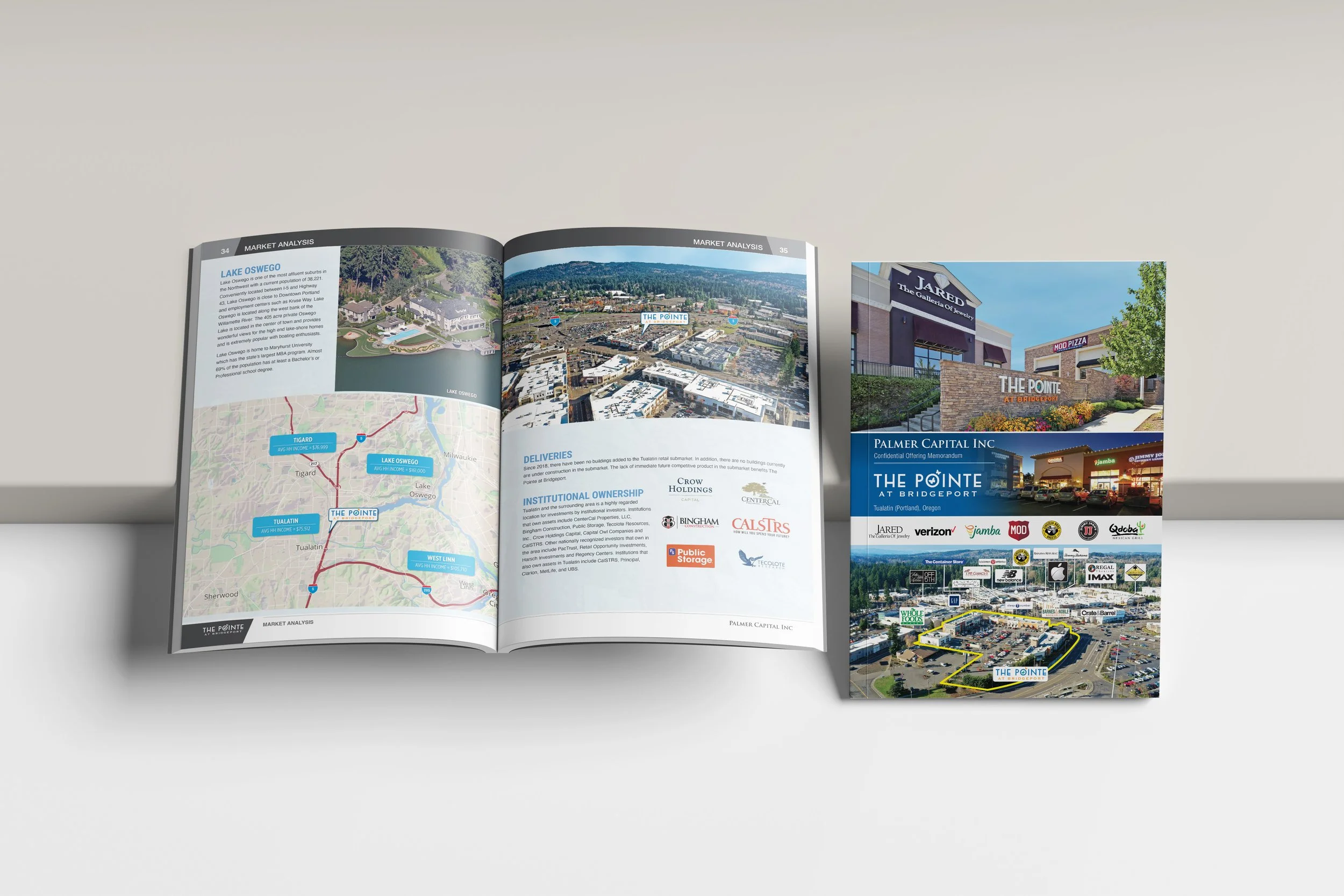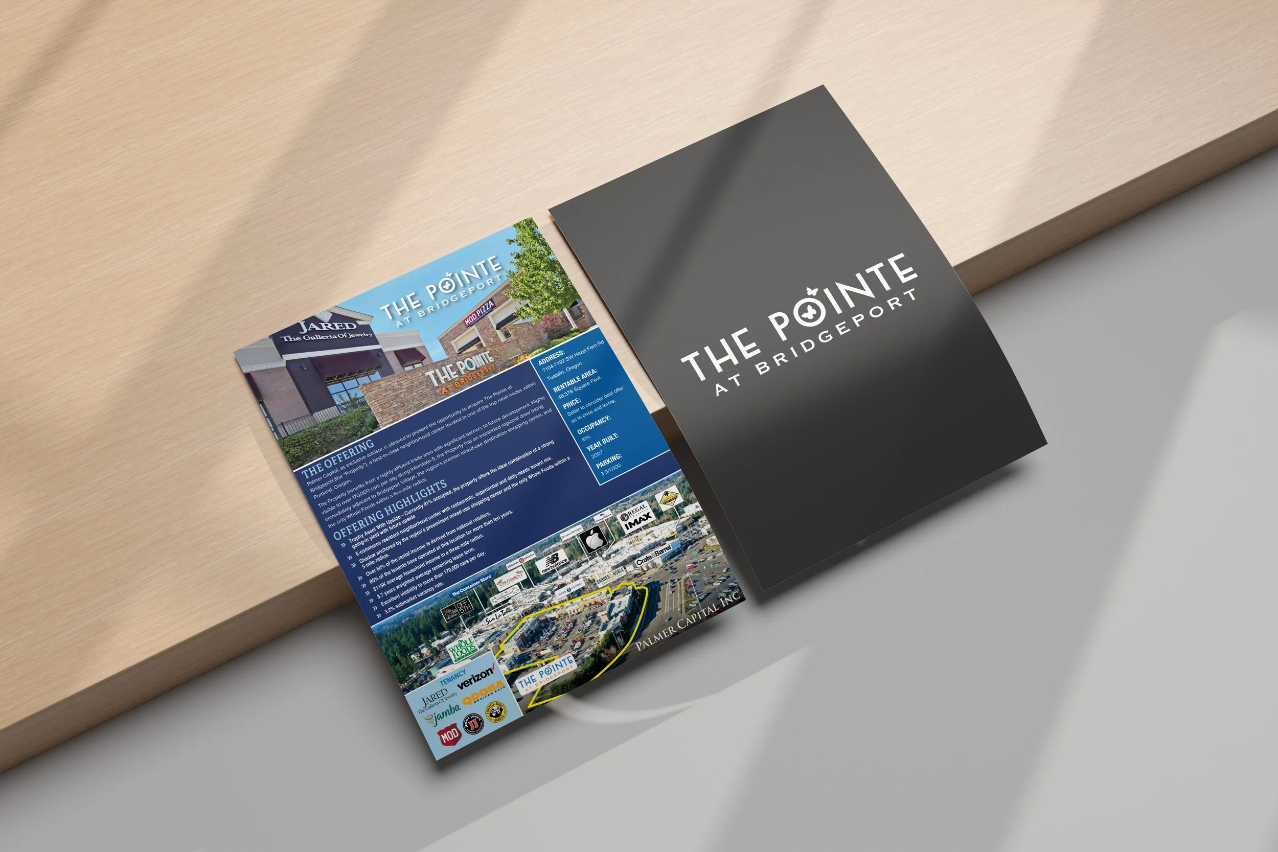 Developed custom graphics, site plans, floor plans, detailed maps, and tailored aerial visuals. The design focused on storytelling to showcase The Pointe At Bridgeport’s location, accessibility, and unique features in a way that supports leasing, investment, and marketing efforts.